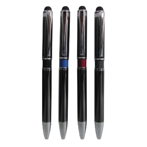 Lapicero metálico retráctil y punta touch y clip central de color